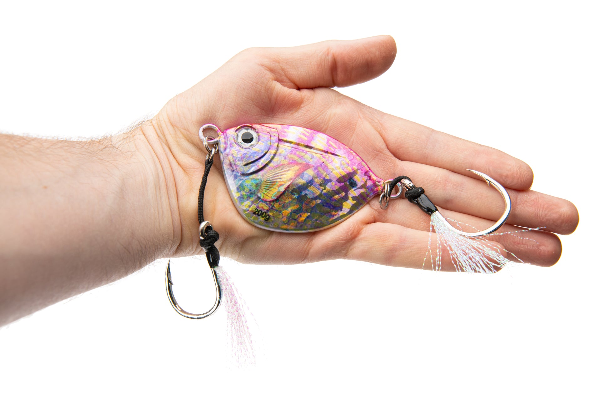 100g for shallow reef jigging, 150g for mid-depth wrecks, and 200g for deeper drops or stronger current. A good general rule of thumb is one gram per foot of depth, but this could vary wildly depending on the current. We recommend choosing the smallest size that the current will allow to get to the bottom without scoping out.